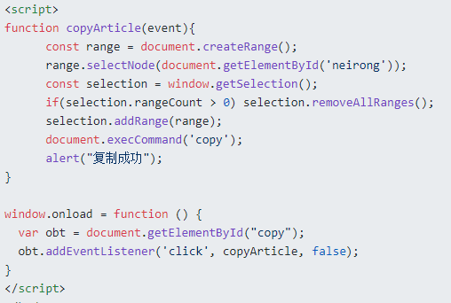 为了让用户更便利地快速复制页面内容,通常的方法是添加一个按钮,用户点击一次即可完成复制操作。在这里,我们使用JavaScript原生方法来配置剪贴板。